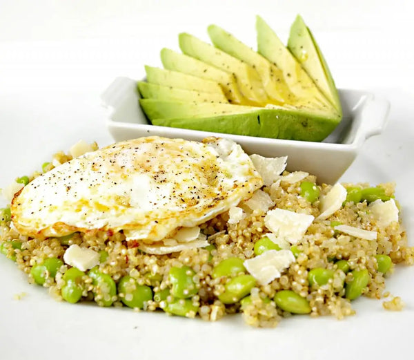 Quinoa with Edamame, Parmesan, Avocado and Egg