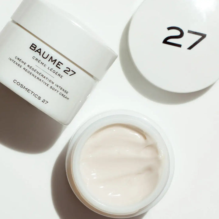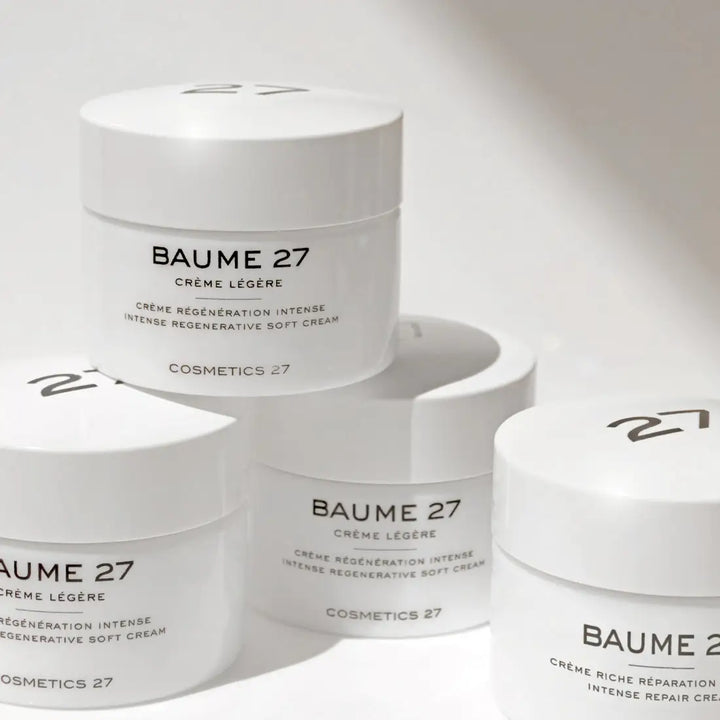 Baume 27 Crème Légère is derived from the iconic Baume 27. It is a soft and supple cream that deeply regenerates and intensely moisturises. The formula draws its exceptional properties from the precious complex of 3 purified extracts of Centella Asiatica, which significantly improves collagen synthesis and the appearance of the skin. The skin regains suppleness, firmness and radiance. The signs of ageing are reduced. Smoothed and rebalanced, the skin is glowing.