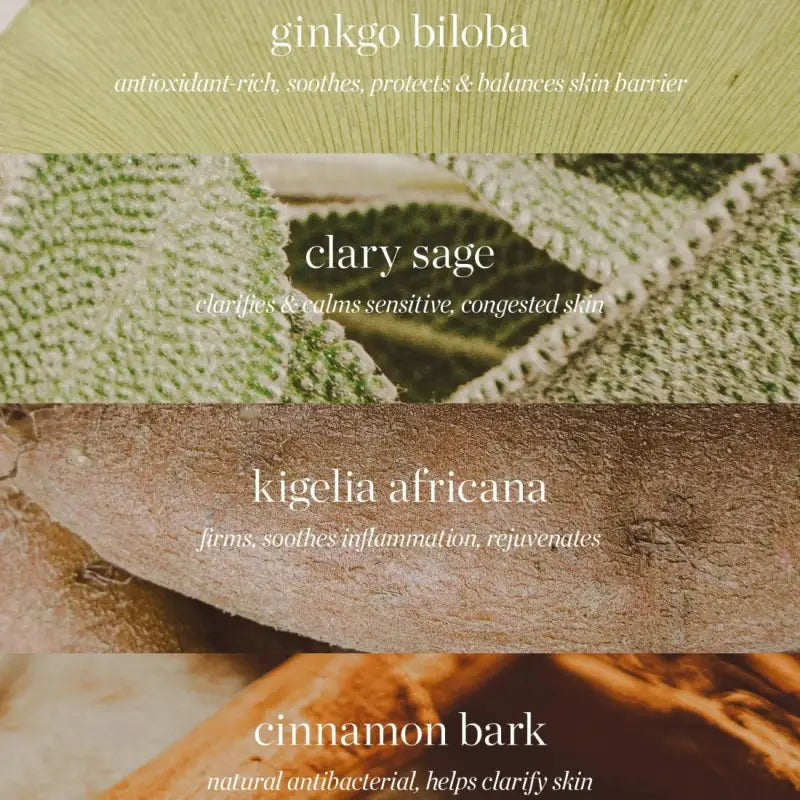 A no-rinse formula specifically designed for sensitive skin and eyes. These concentrated tablets are infused with clinically-backed, high-performance botanicals like antioxidant-rich ginkgo biloba and clary sage to calm and clarify, skin-rejuvenating kigelia africana and antibacterial cinnamon bark. Helps refine pores and control congestion while maintaining hydration and comfort.