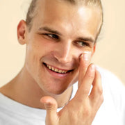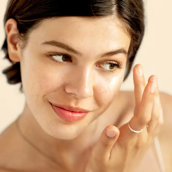 2. Using fingertips, gently rub into the face in round motions to stimulate circulation.