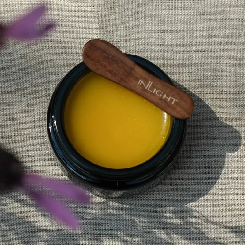 In the evening, after cleansing the face, apply a little Inlight Night Balm onto the face and neck with the wooden spatula. Massage gently in a circular motion until fully absorbed.