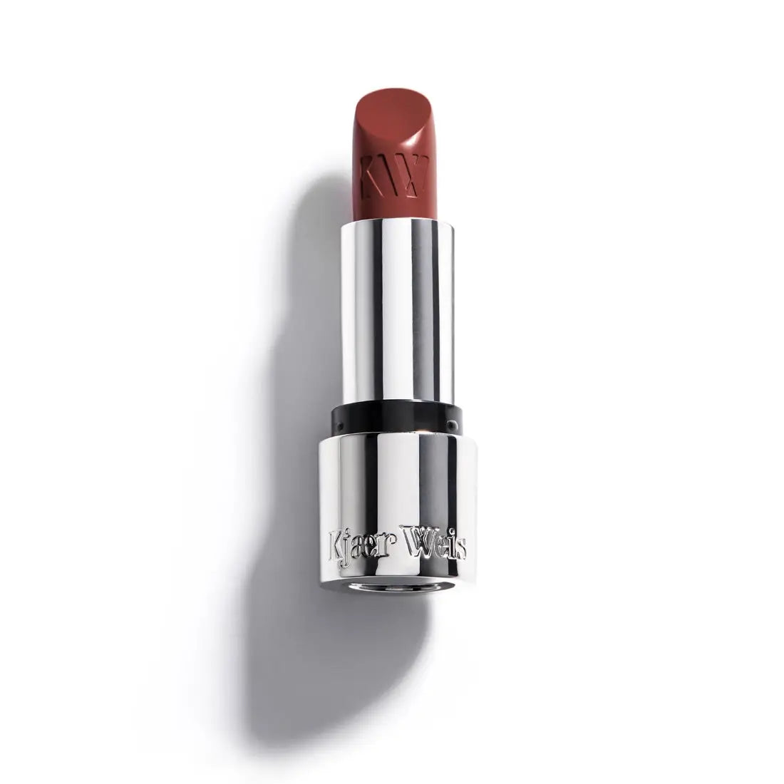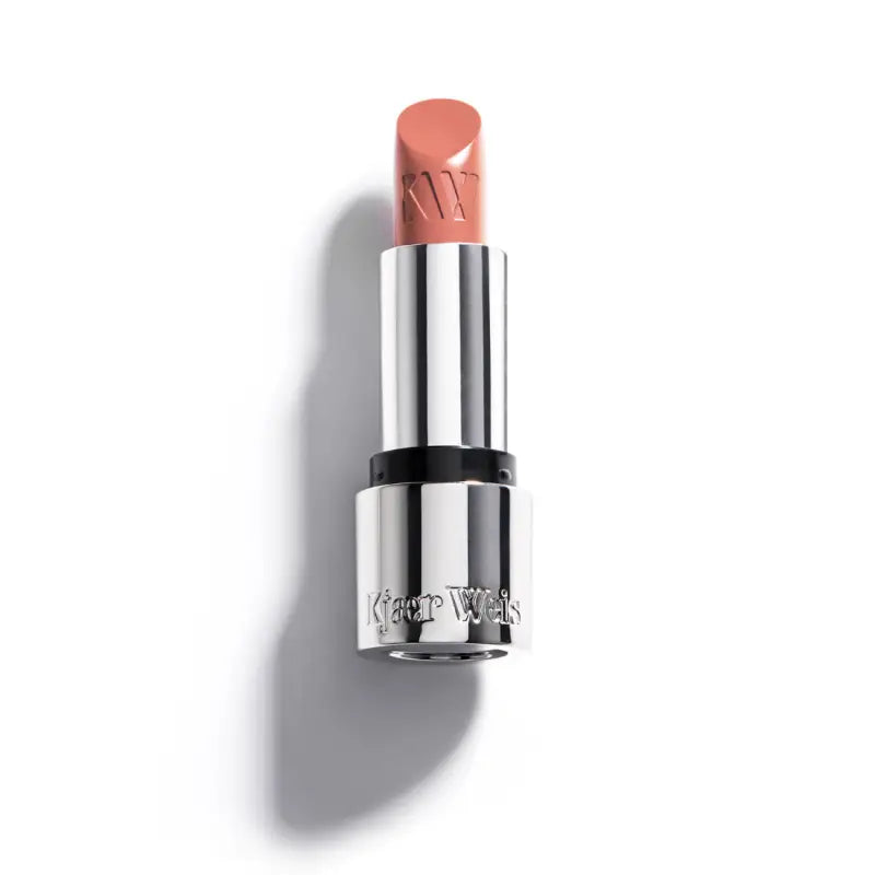 The Kjaer Weis Lipstick can be applied with the Lip Brush or directly from the tube. Color is buildable, dab on for a sheer, diffused color; or swipe on for a highly pigmented statement lip. For a clean look, use Lip Pencil to line the lips for a sharp edge. For a high-gloss finish, top with Lip Gloss.