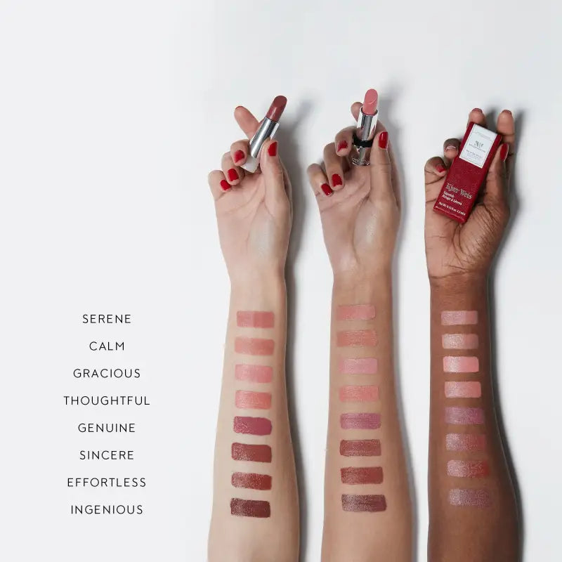 Accent your natural lip color with a full-spectrum rainbow of nudes made up of timeless colors inspired by nature with your perfect undertone. Nude, Naturally is a collection of 8 Certified Organic nudes in a gorgeously flattering range of tans, peachy-beiges, and browns. When identifying shades, Kirsten was equally inspired by the tender petals of a flower as she was a raw hunk of unformed clay. Both materials brim with natural energy, life and beautiful color. This creamy, ultra-nourishing formula swipes on with ease for a soft satin finish.
