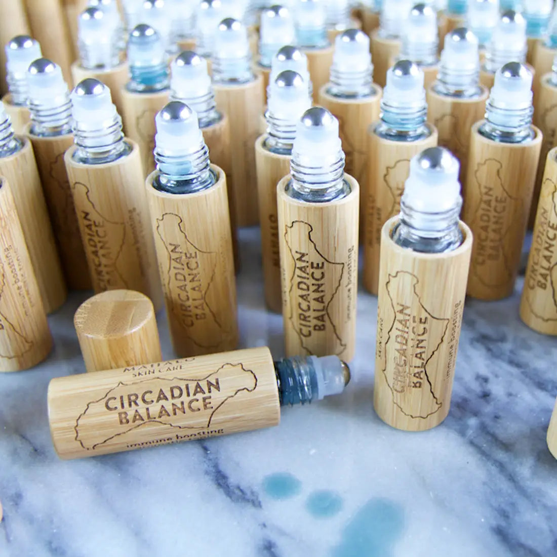 The CIRCADIAN BALANCE synergy harnesses the benefits of Royal Hawaiian Sandalwood that can help boost clarity and focus, Fragonia to aid in balancing immune and circadian rhythms, Palo Santo and Patchouli to assist in soothing anxiety and depression, Blue Tansy to help calm seasonal colds, and more.