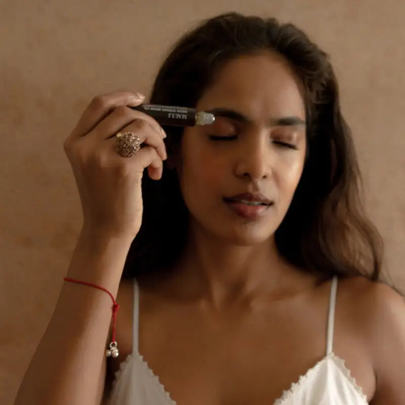 “In Ayurveda, activating the marma points on and around the brow area helps ease tension, giving skin the appearance of greater health and vitality”. Anita Kaushal, Mauli Co-Founder
