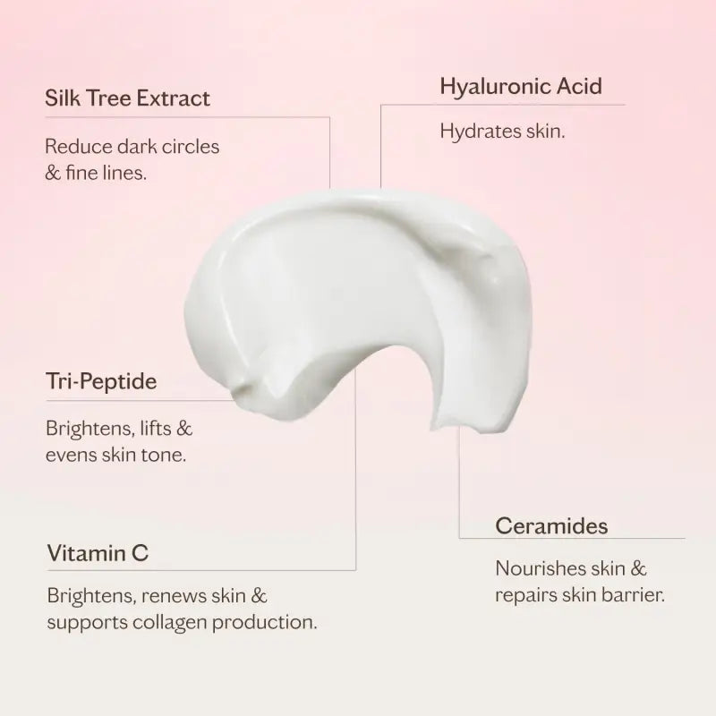 Revitalise tired eyes with this firming eye cream, powered by a tri-peptide complex to boost collagen and elastin for a lifted, smoother look. Albizia Bark Extract helps reduce dark circles by detoxifying and strengthening capillaries, while hyaluronic acid and ceramides deeply hydrate and plump fine lines and wrinkles.