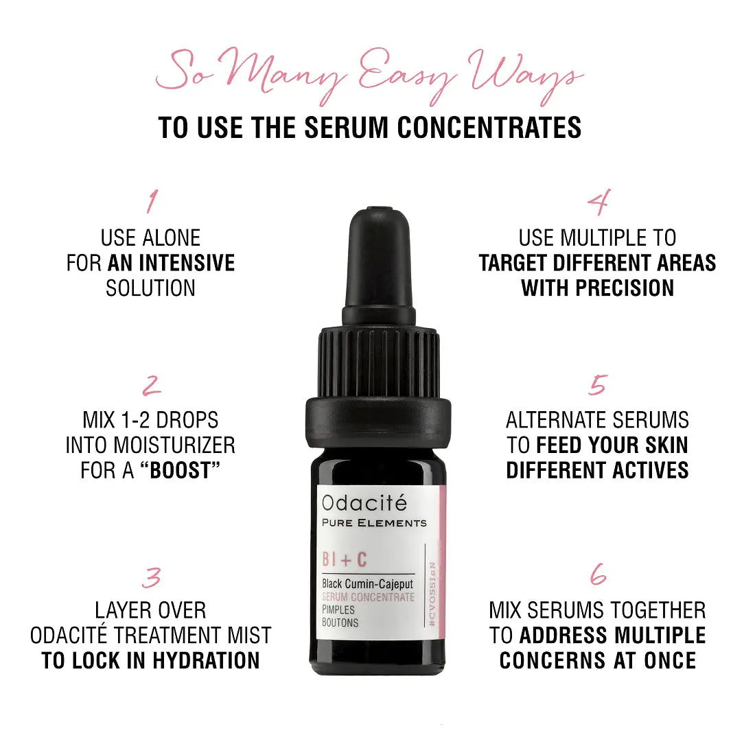 Apply 3 drops of Odacite BL+C Pimples Serum Concentrate directly to clean, dry skin for intensive benefits. Or, mix 2-3 drops of with your favorite lotion, and massage in until absorbed. Repeat Odacite BL+C Pimples Serum Concentrate twice daily.