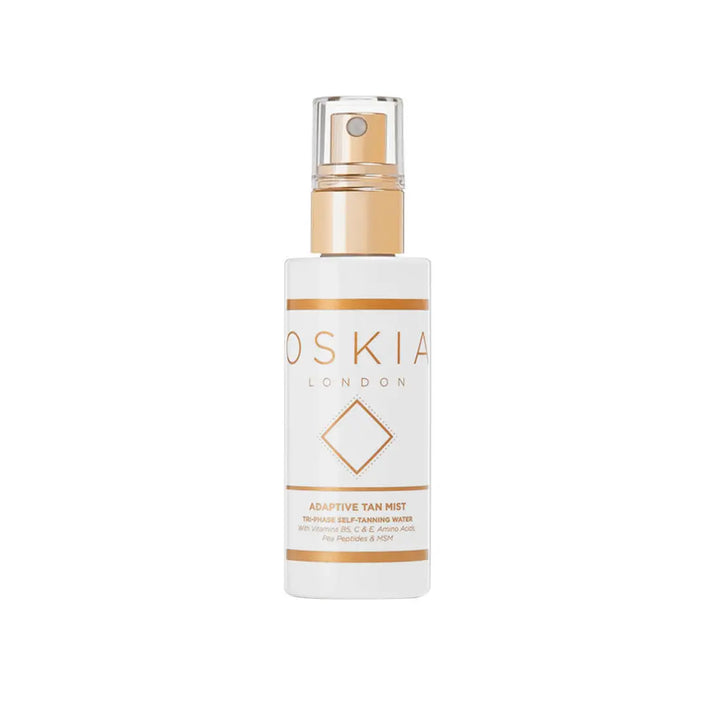 Oskia Adaptive Tan Mist is a super fine and refreshing tanning mist with a unique skin conditioning, Tri-Phase formula.