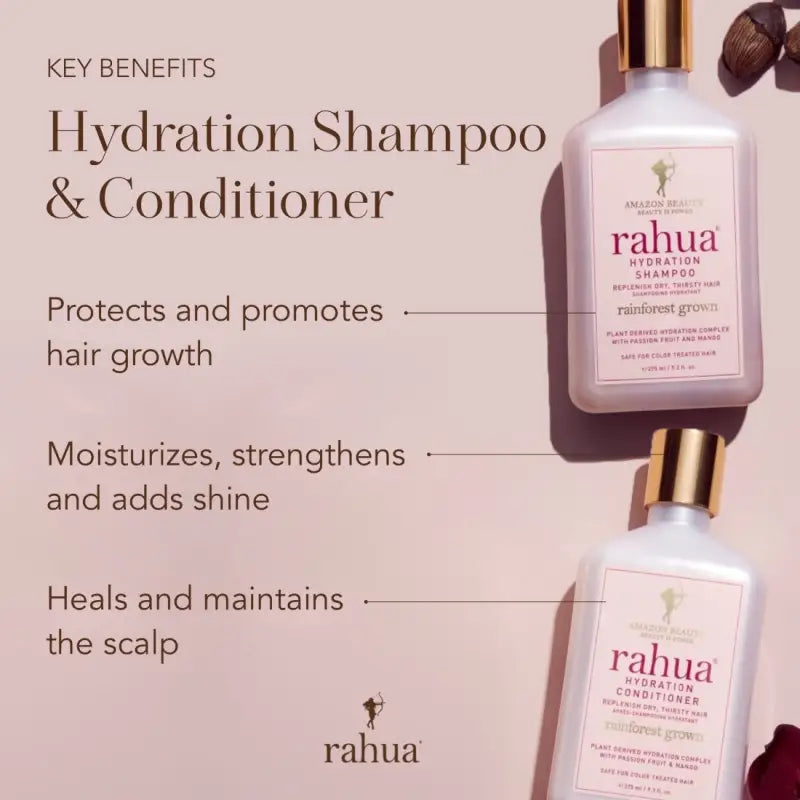 Created to replenish the driest, thirstiest hair, RAHUA Hydration Conditioner has a rich and creamy formula infused with our plant-powered complex crafted with rare Amazonian oils and natural protein-bonding sugars that drive hydration deep into each strand of hair. Scented with the tropical aromas of passion fruit and mango, this innovative formula softens, de-tangles and tames hair, leaving it manageable and stronger, healthier, smoother and shinier. Maximum moisture conditioner transforms dull, dry and damaged hair