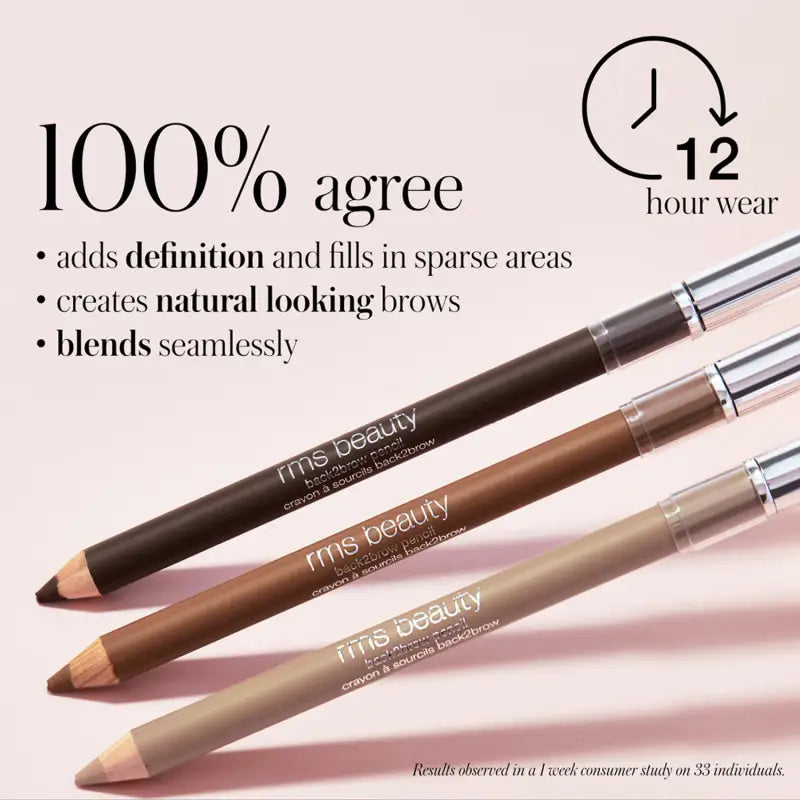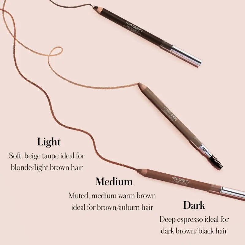 Fills in and emphasizes brows with natural-looking nourishing creamy color. Infused with organic jojoba oil, beeswax and vegetable squalane, it conditions the brow hair with each velvety smooth application. The blend of hibiscus and safflower oils helps to revitalize brow hair and promote thick, full, healthy-looking brows. Use alone to reshape and fill in. Or use with RMS Beauty Back2Brow Powders to create a full brow look.