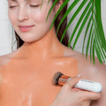 - The supersized lacquered wooden handle fits snugly into the palm of your hand for easy control and comfortable face and body application.