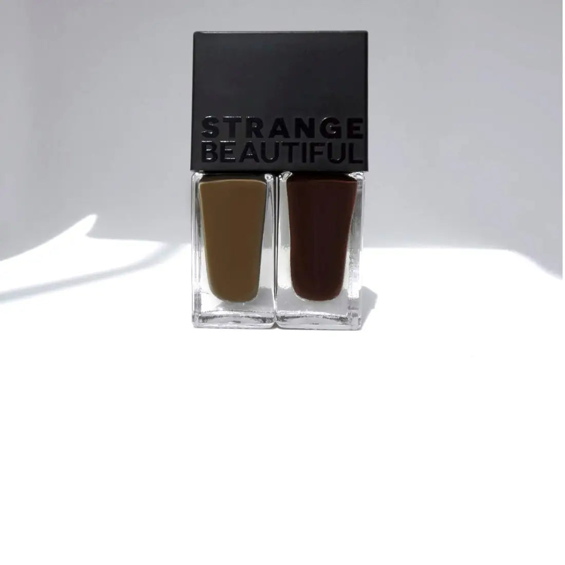 Separated by a single slab of thick glass, the colors of the Cover Nail Polish from Strange Beautiful are smooth, sleek, and contained with a dual-sided holder. They are designed to both complement and contrast – depending on your preference – and their neutral accentuation means these hues pair with almost anything in your most fashionable wardrobe.
