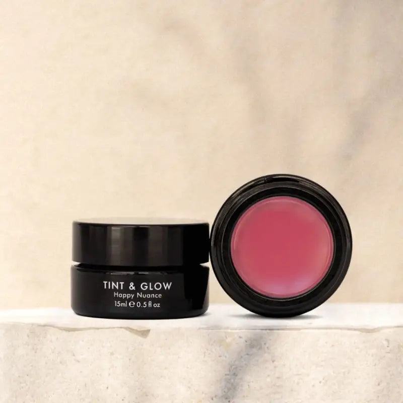 - Tint & Glow Happy Nuance is a radiant hue that effortlessly enhances your lips and cheeks with a touch of playful rose. Formulated exclusively with plant-derived pigments, this must-have colour flatters a variety of complexions, leaving a healthy, natural flush.